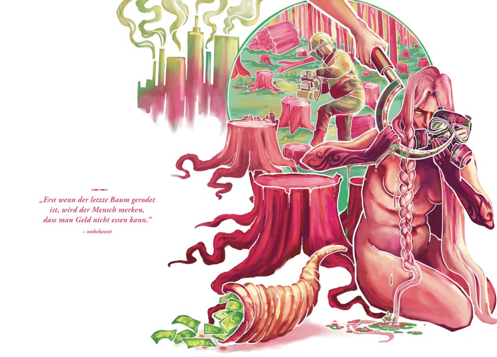 Ergänzt werden die Illustrationen durch erklärende Texte sowie poetische Passagen, die Pias persönliche Auseinandersetzung mit den jeweiligen Themen vermitteln und den Blick der Betrachter*innen erweitern sollen.