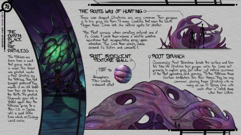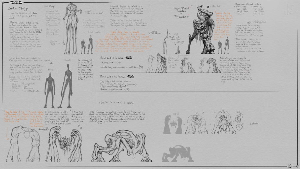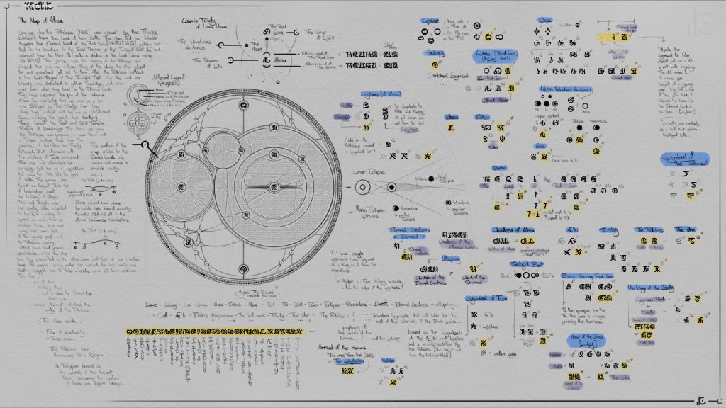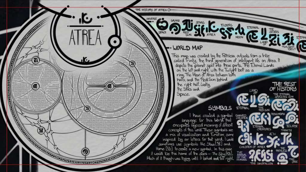 Marlon erschuf eine ausgearbeitete Welt mit eigenen Bewohnern, Ökosystemen, Landschaften, Biomen sowie einer eigens geschaffenen Sprache und Schrift.